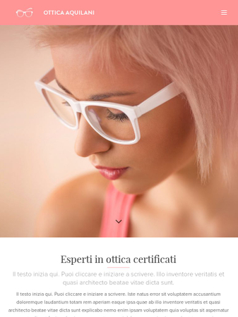 Questo modello dai leggeri colori pastello è l'ideale per ottici, gioiellierie o boutique di moda. Il tuo logo aziendale apparirà nel menù sul lato sinistro che ti permetterà inoltre di aggiungere la numerazione alle pagine del tuo sito web.
