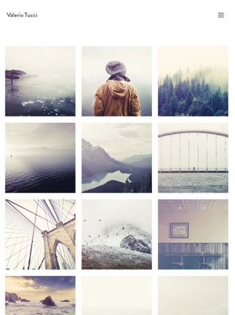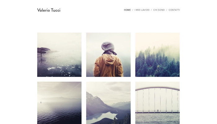 Questo design è preparato per fotografi, designer e artisti. Il semplice layout della homepage consente di condividere online il tuo portfolio lavori in modo sorprendente e organizzato.