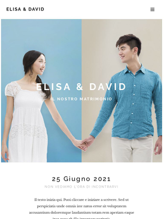 Annuncia il tuo matrimonio con questo grazioso modello. Tutte le informazioni necessarie saranno organizzate alla perfezione per i tuoi invitati e vedrai chi parteciperà grazie ad un pratico formulario presenze.