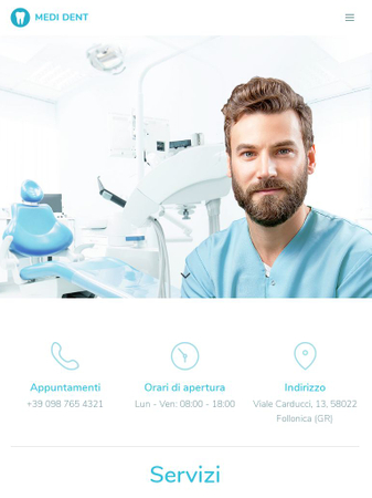 Design professionale per dentisti, igienisti dentali e altre professioni mediche. Questo modello mostrerà ai tuoi pazienti le informazioni più rilevanti sulla tua attività. Puoi facilmente condividere i tuoi dettagli di contatto e novità importanti direttamente nell'homepage e usare la nostra vasta galleria di icone per rendere il tuo sito web ancora più interattivo.