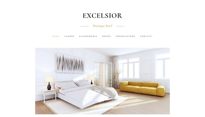 Questo modello chic è un'ottima soluzione per i boutique hotel e altre abitazioni di lusso. Il logo centrale farà risaltare il tuo marchio mentre il layout ben strutturato acconsente una facile navigazione. I visitatori possono rapidamente trovare la tua posizione, consultare le offerte e completare la prenotazione del soggiorno.