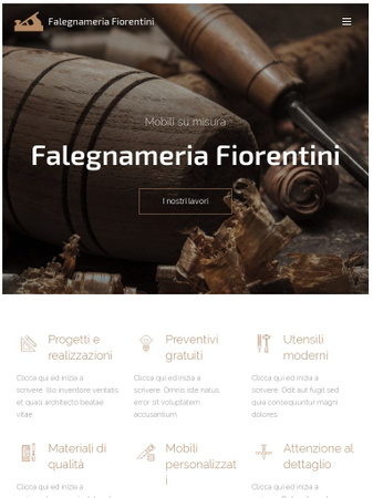 Con questo modello potrai realizzare facilmente un sito web perfetto per la tua attività da falegname. Colori semplici e icone accattivanti si fondono perfettamente con le gallerie in cui esponi i tuoi lavori. Le testimonianze dei clienti soddisfatti e il numero di telefono ben visibile inviteranno i visitatori a chiamarti. Questo modello ha tutto ciò di cui un professionista può aver bisogno per promuovere la propria attività.